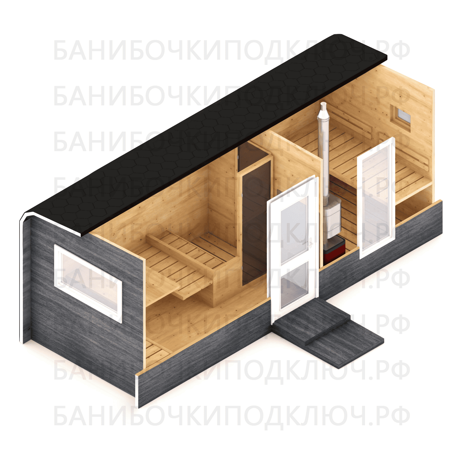 Баня Викинг 6 x 2,2 м с бок. входом и проходной мойкой